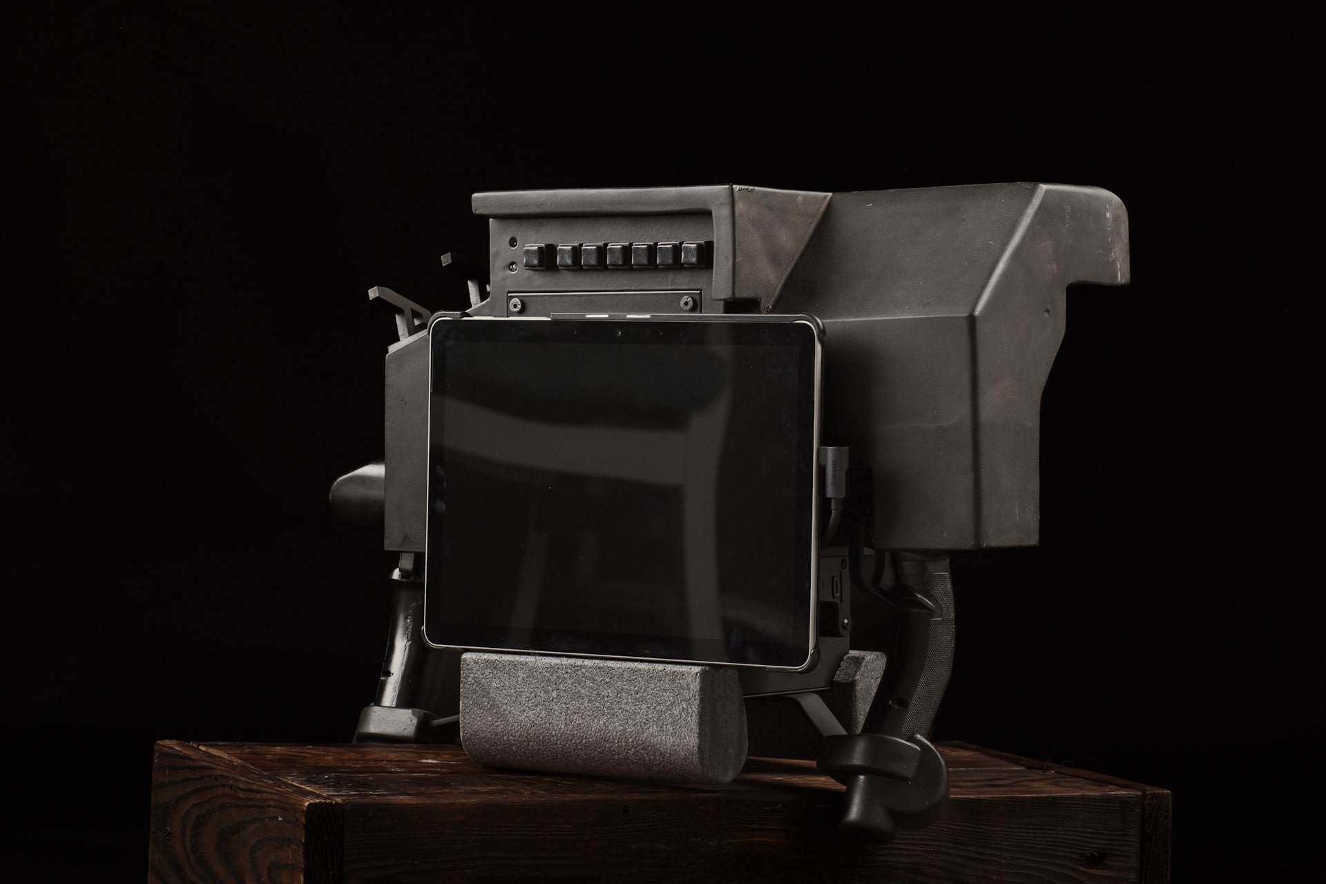 Приєднайте до блоку управління USB-конектор. Після цього зображення з планшету має продублюватися на екрані всередині блоку управління, який буде використовуватися курсантом. Водночас активується доступ до всіх кнопок управління, розташованих на ручках блоку управління.